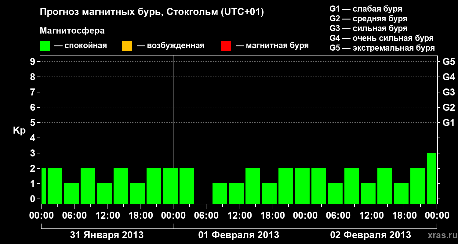 Прогноз магнитных бурь в Стокгольме — 31 января 2013 года