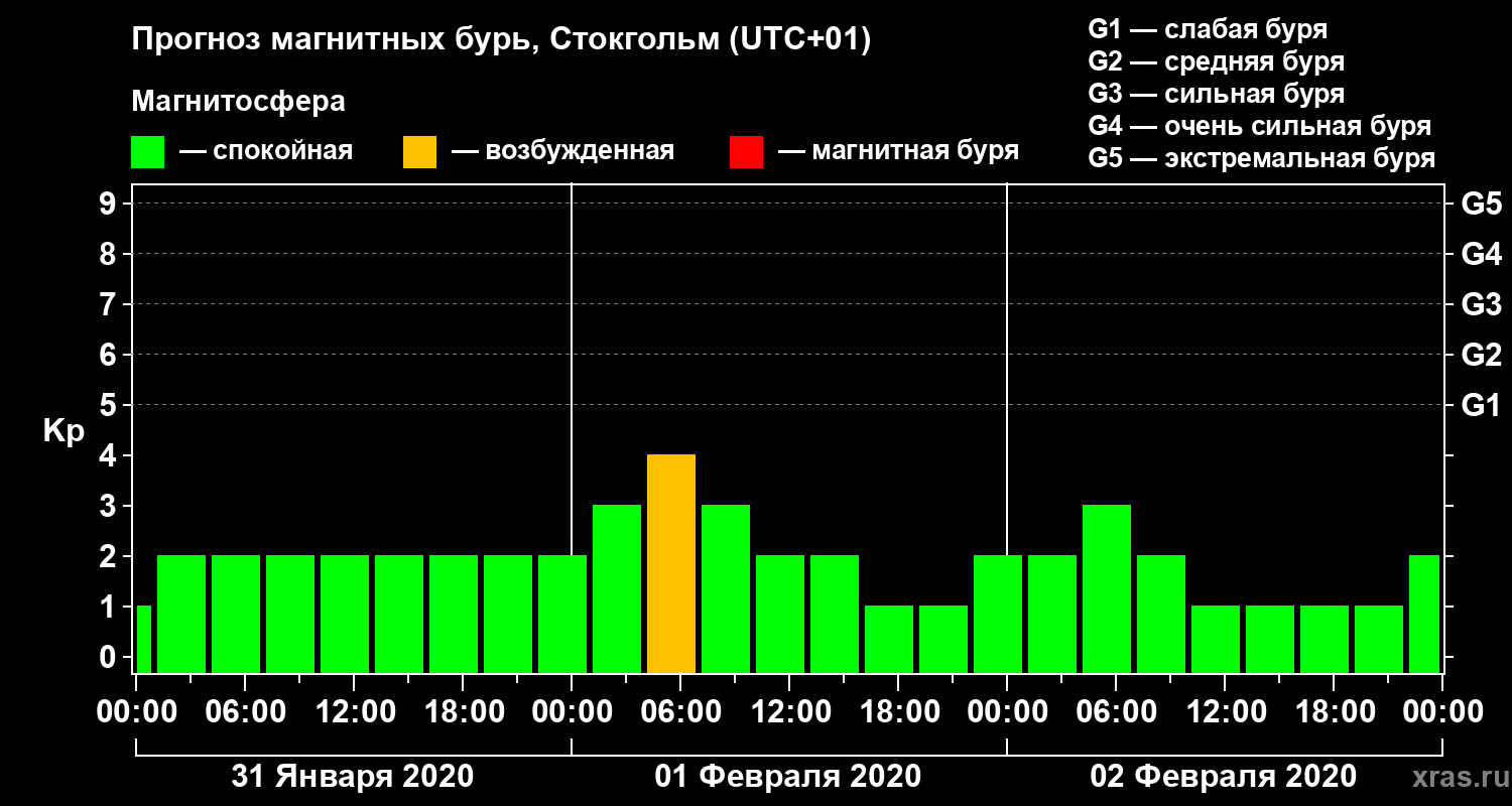 Прогноз магнитных бурь в Стокгольме — 31 января 2020 года