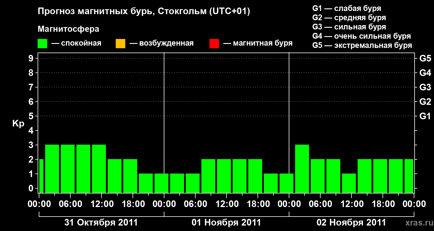 Прогноз магнитных бурь в Стокгольме — 31 октября 2011 года