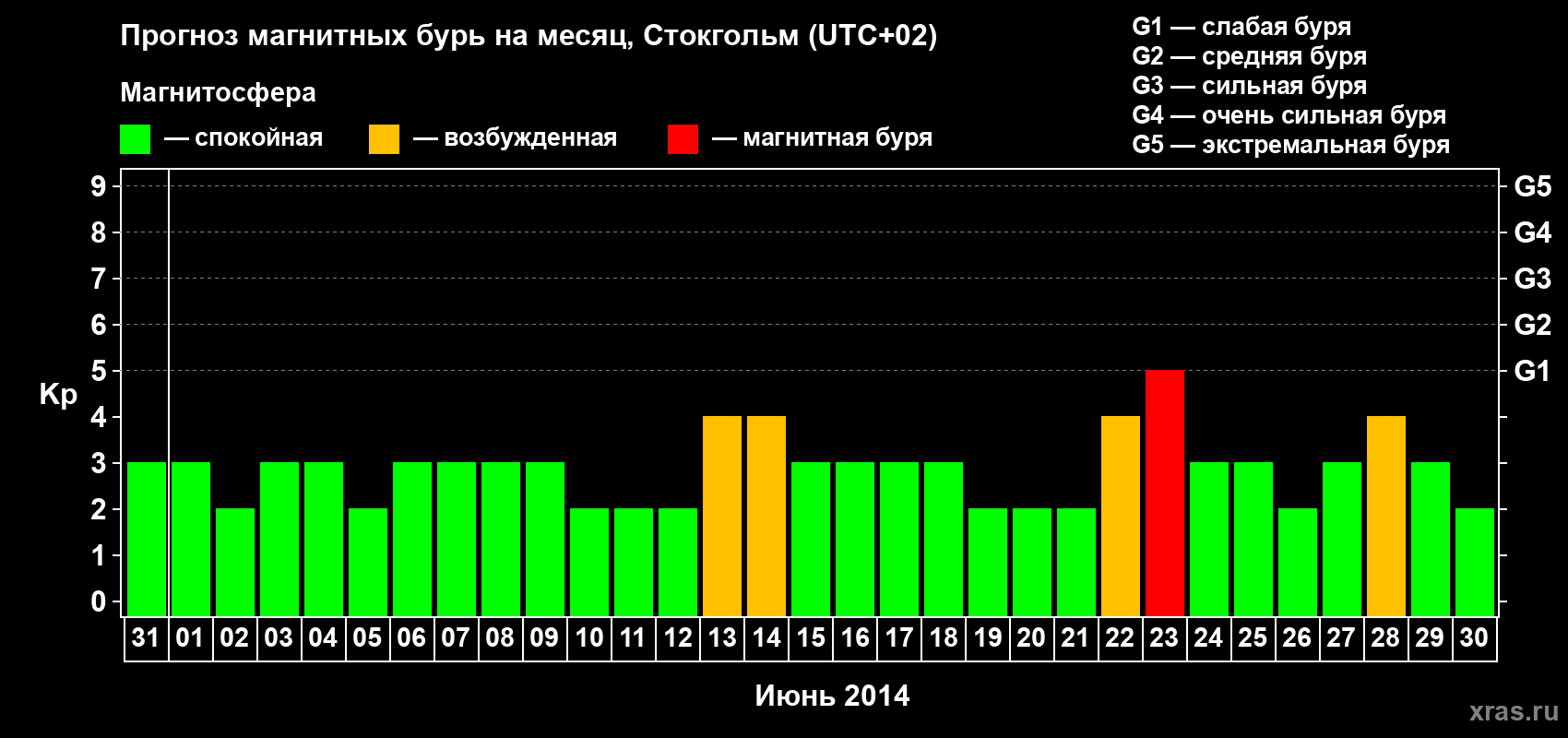 Прогноз магнитных бурь в Стокгольме — 31 мая 2014 года