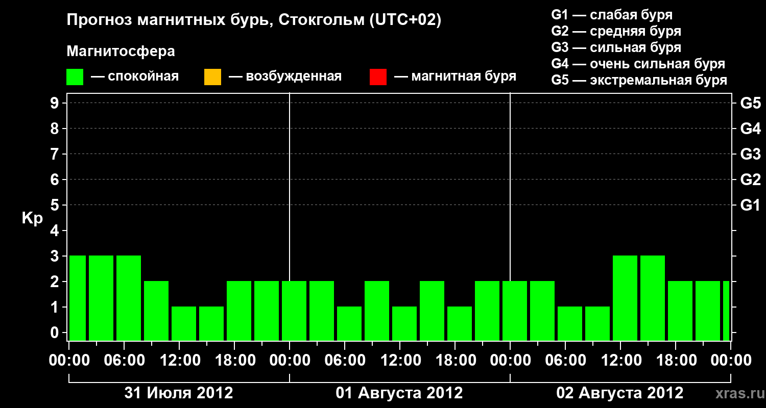 Прогноз магнитных бурь в Стокгольме — 31 июля 2012 года