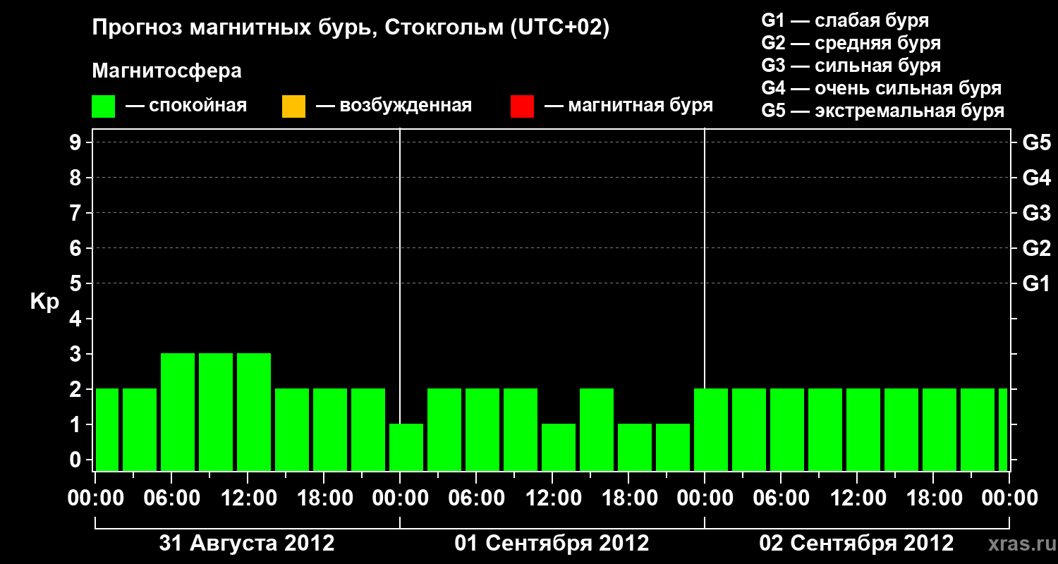 Прогноз магнитных бурь в Стокгольме — 31 августа 2012 года