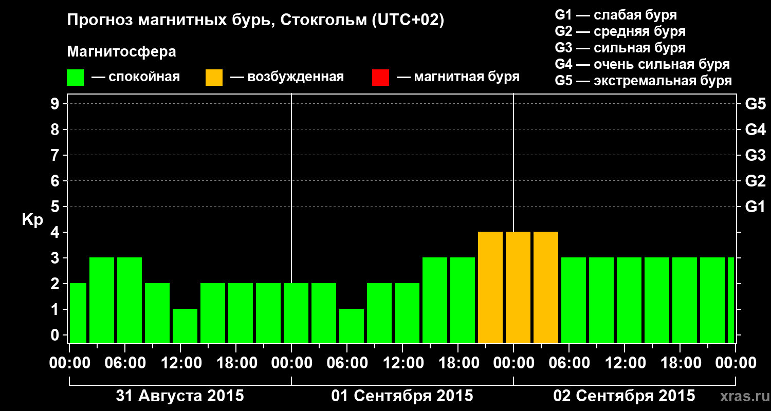 Прогноз магнитных бурь в Стокгольме — 31 августа 2015 года