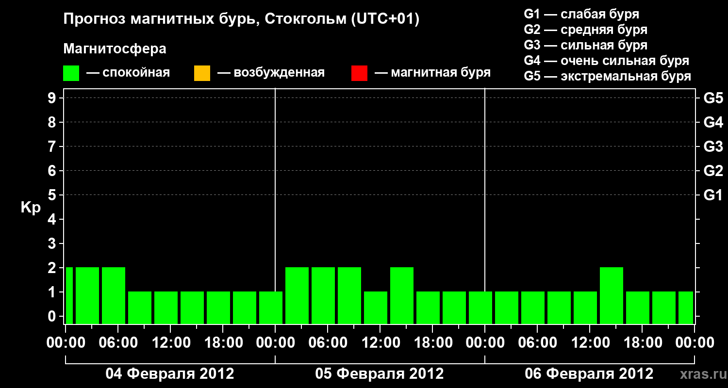 Прогноз магнитных бурь в Стокгольме — 4 февраля 2012 года
