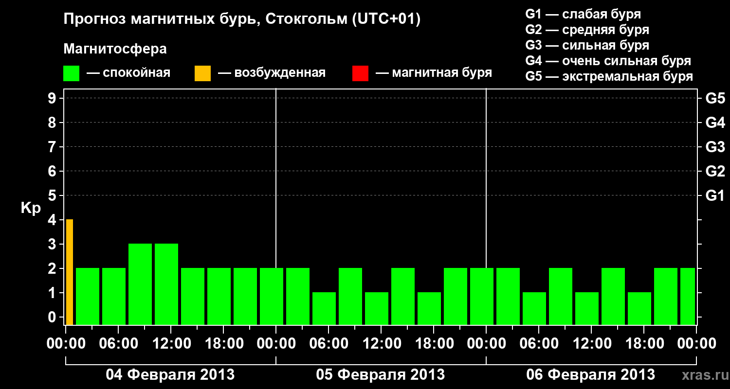 Прогноз магнитных бурь в Стокгольме — 4 февраля 2013 года