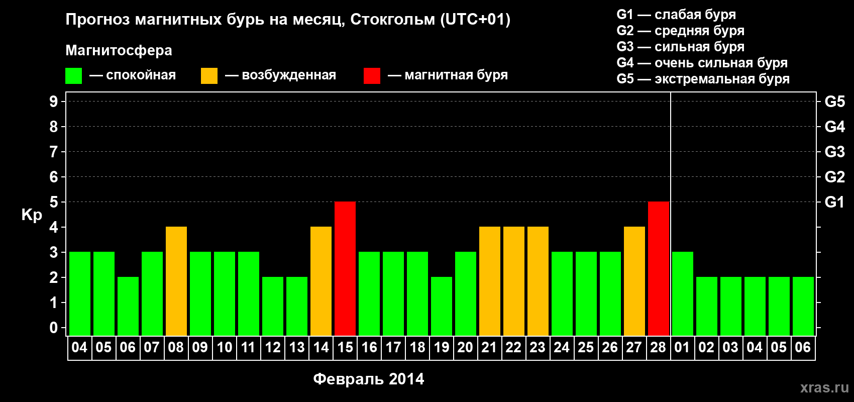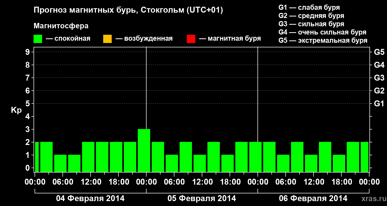 Прогноз магнитных бурь в Стокгольме — 4 февраля 2014 года
