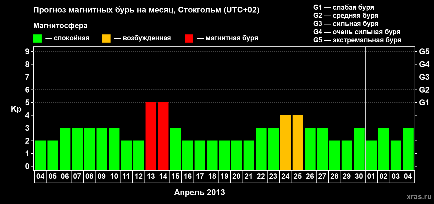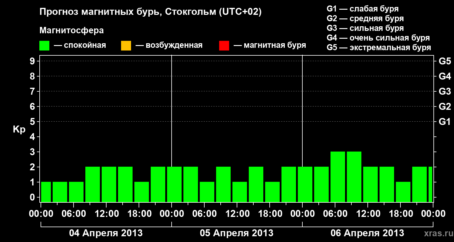 Прогноз магнитных бурь в Стокгольме — 4 апреля 2013 года