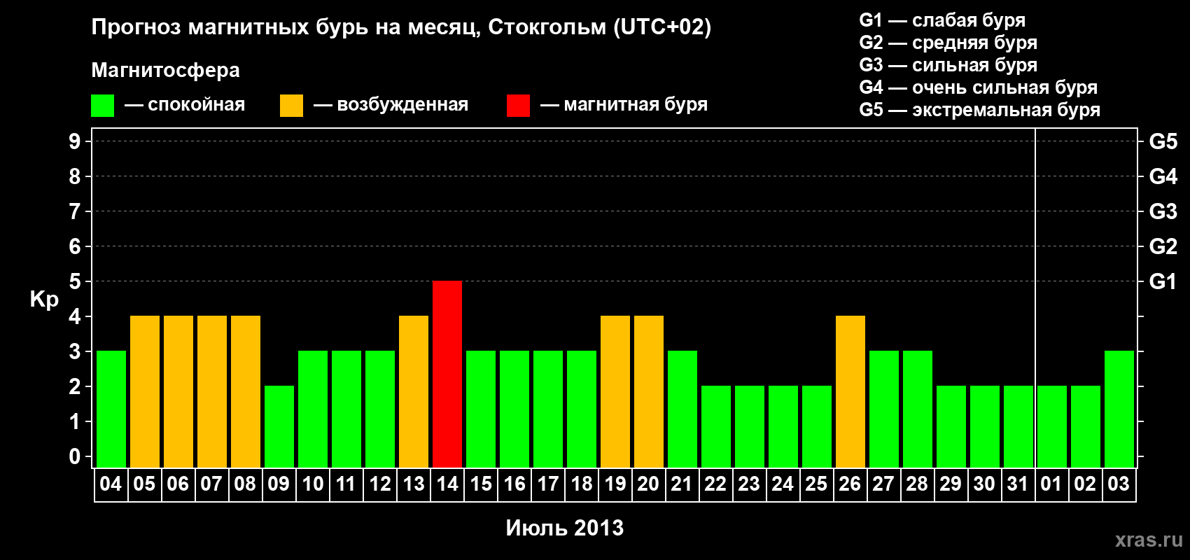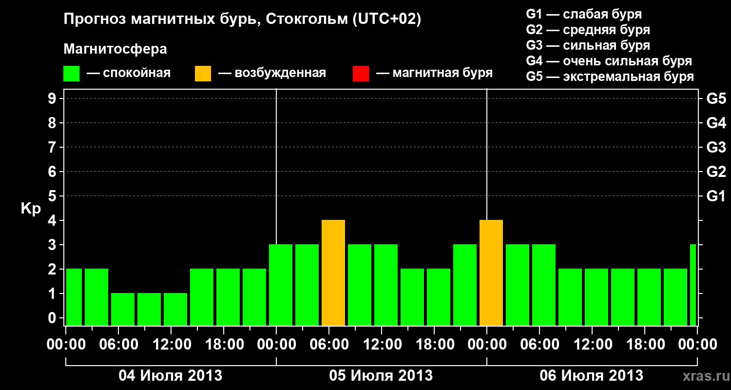 Прогноз магнитных бурь в Стокгольме — 4 июля 2013 года