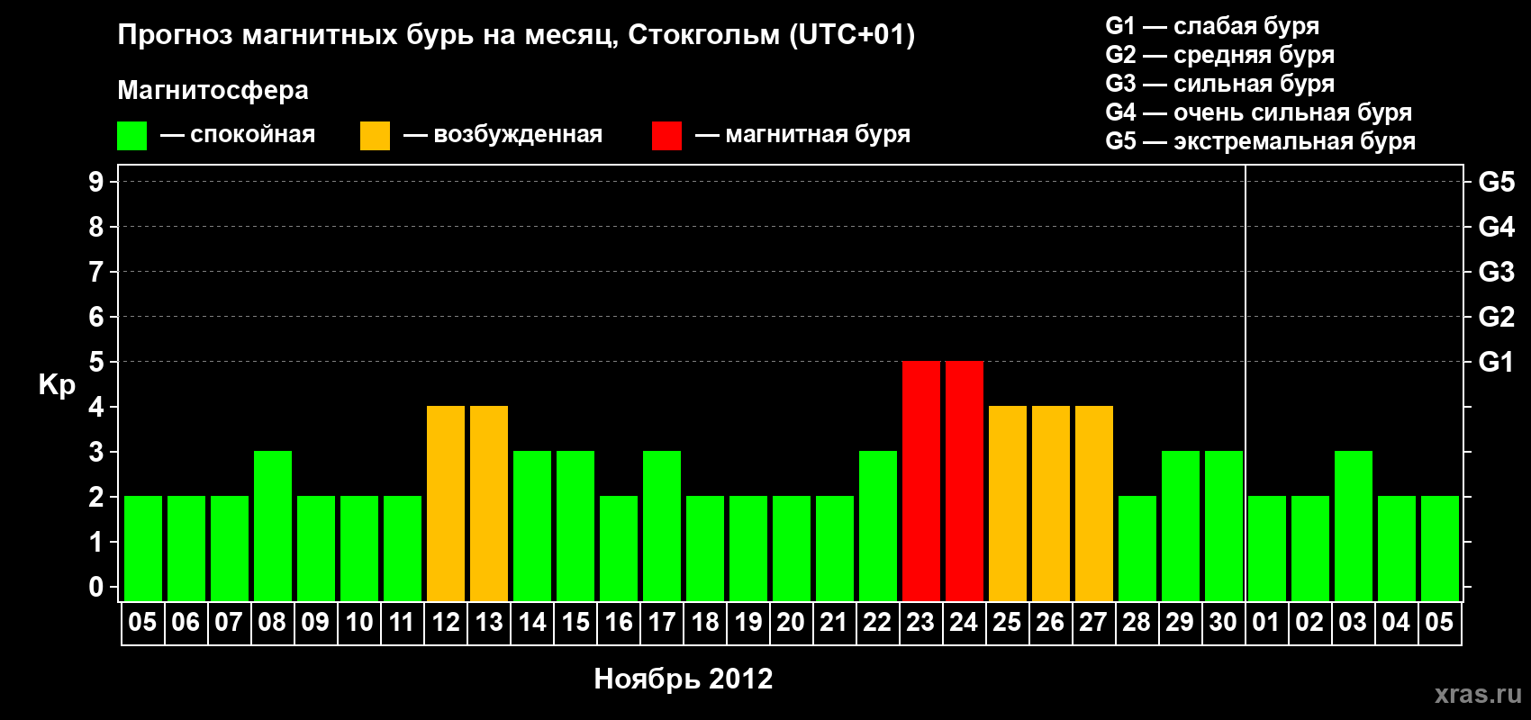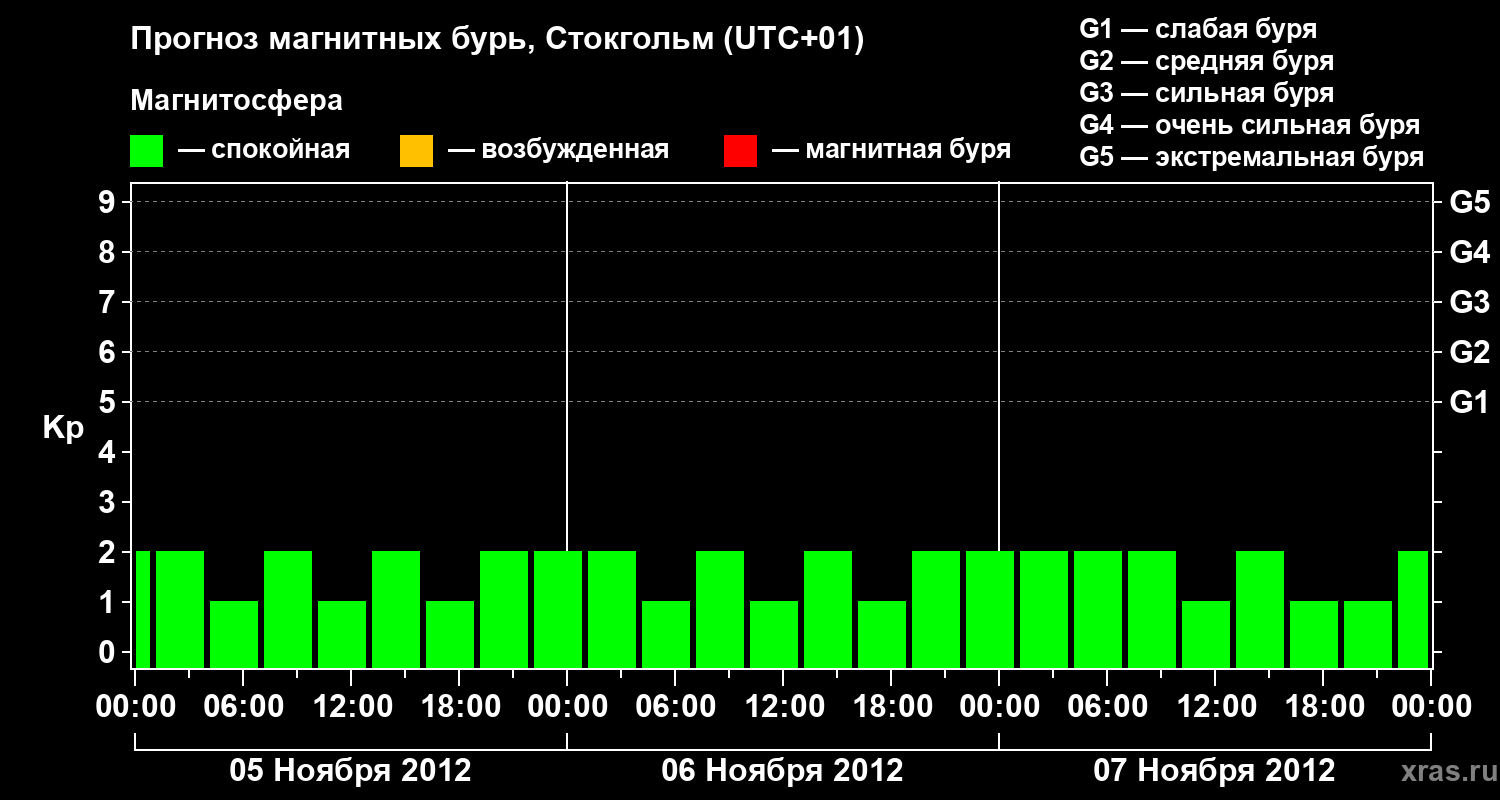 Прогноз магнитных бурь в Стокгольме — 5 ноября 2012 года