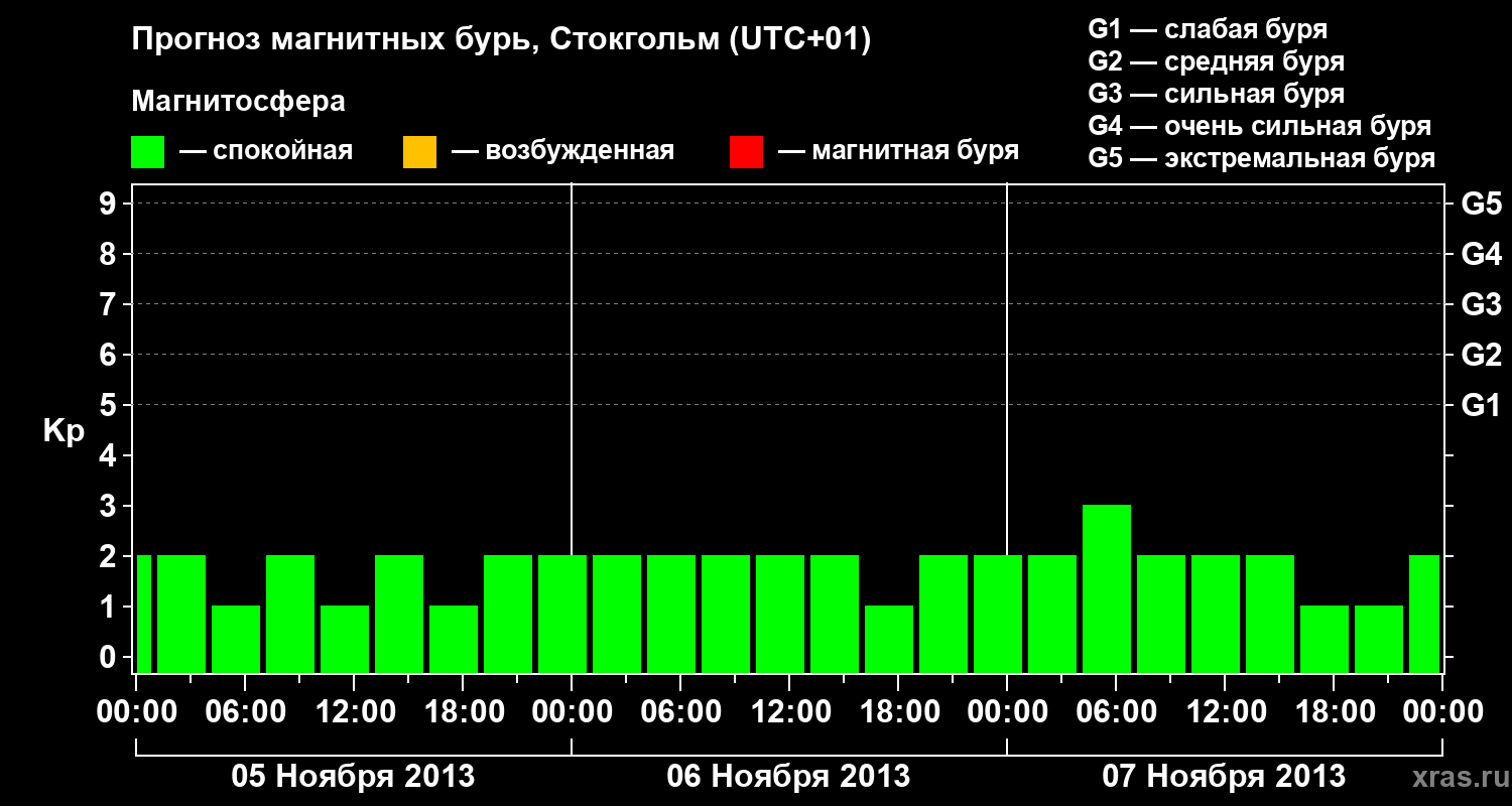 Прогноз магнитных бурь в Стокгольме — 5 ноября 2013 года