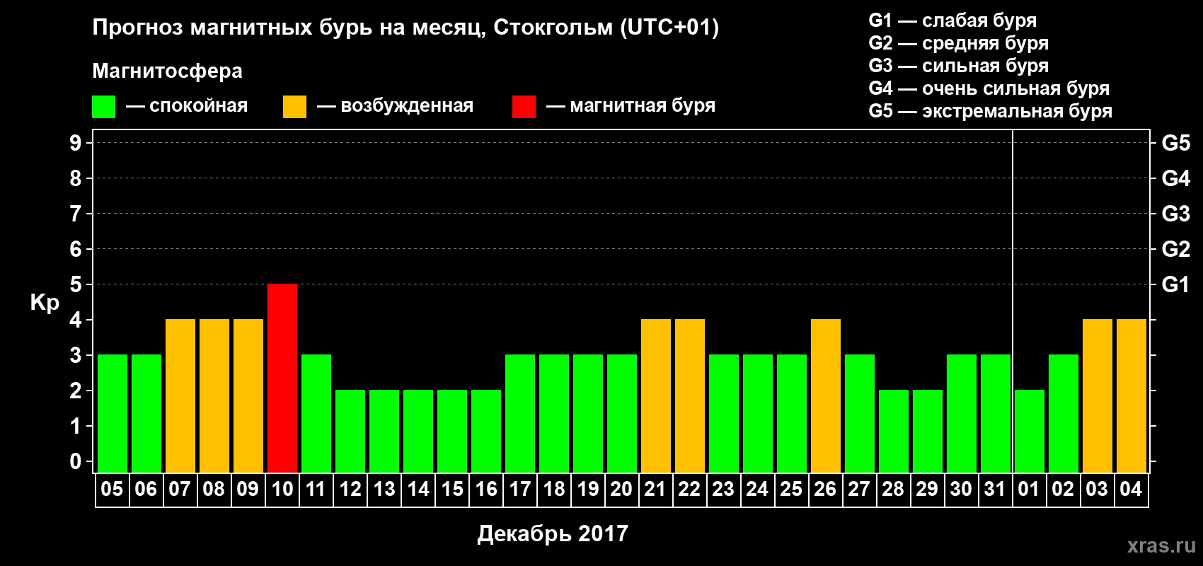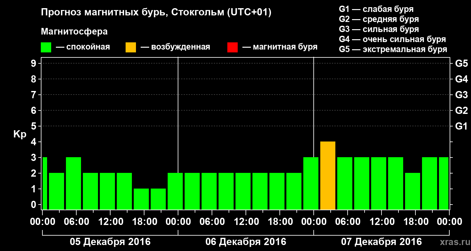 Прогноз магнитных бурь в Стокгольме — 5 декабря 2016 года