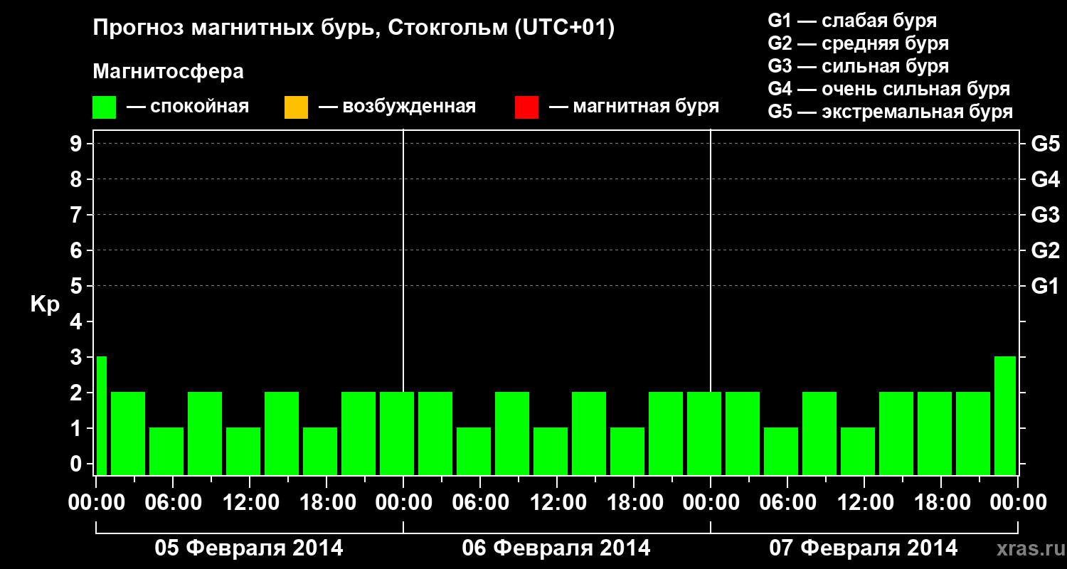 Прогноз магнитных бурь в Стокгольме — 5 февраля 2014 года