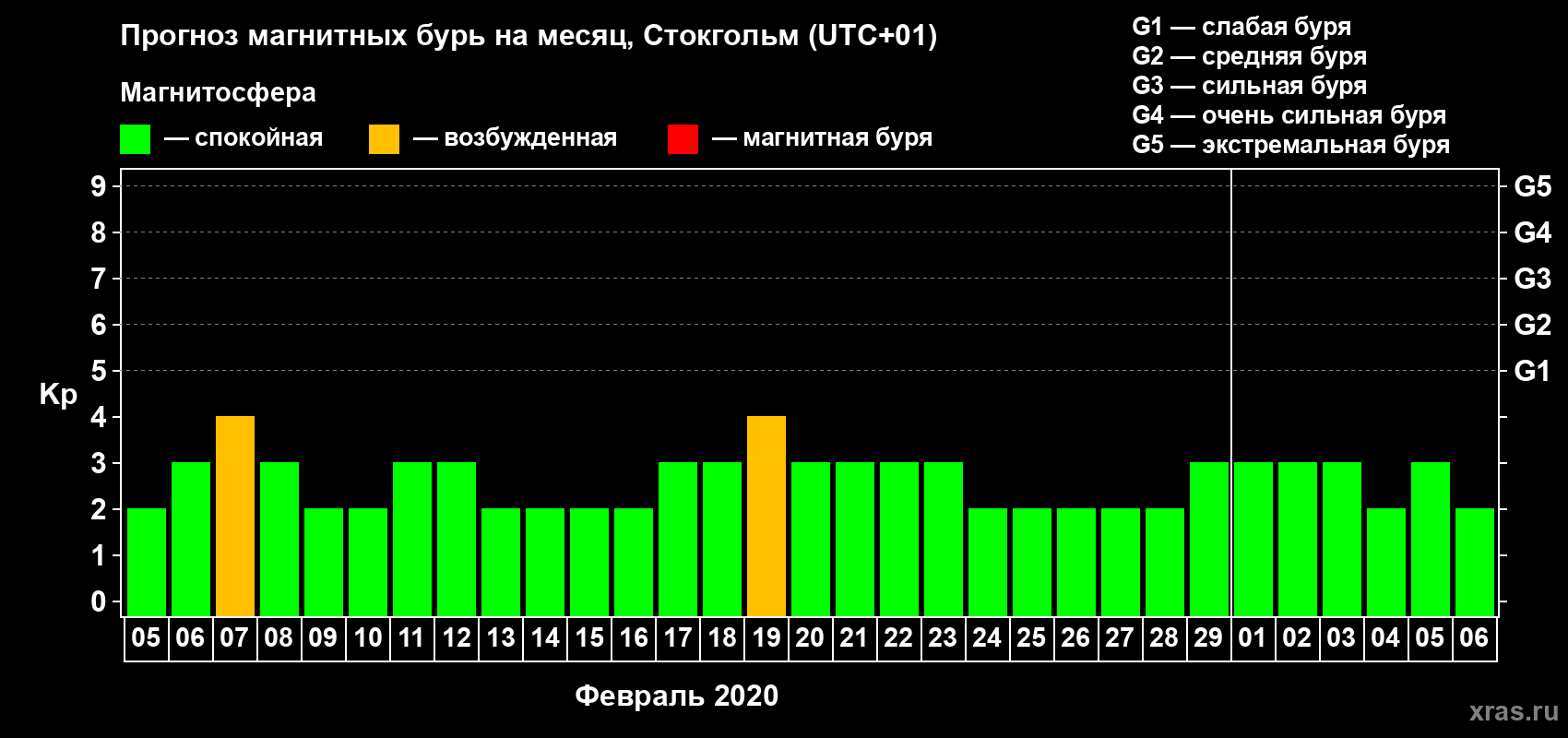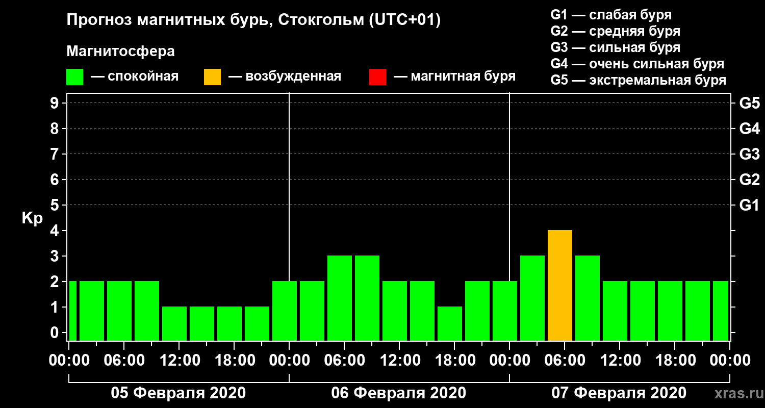Прогноз магнитных бурь в Стокгольме — 5 февраля 2020 года