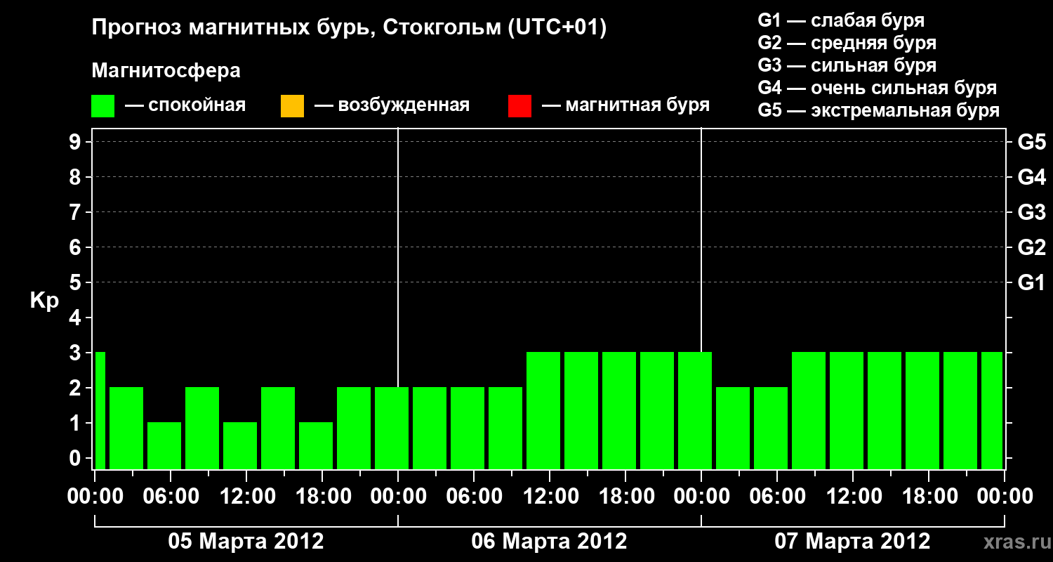 Прогноз магнитных бурь в Стокгольме — 5 марта 2012 года