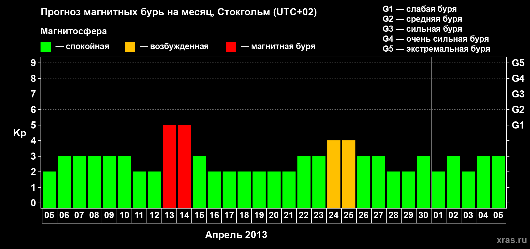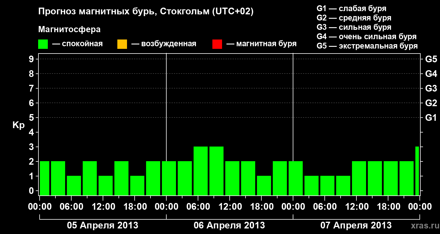 Прогноз магнитных бурь в Стокгольме — 5 апреля 2013 года