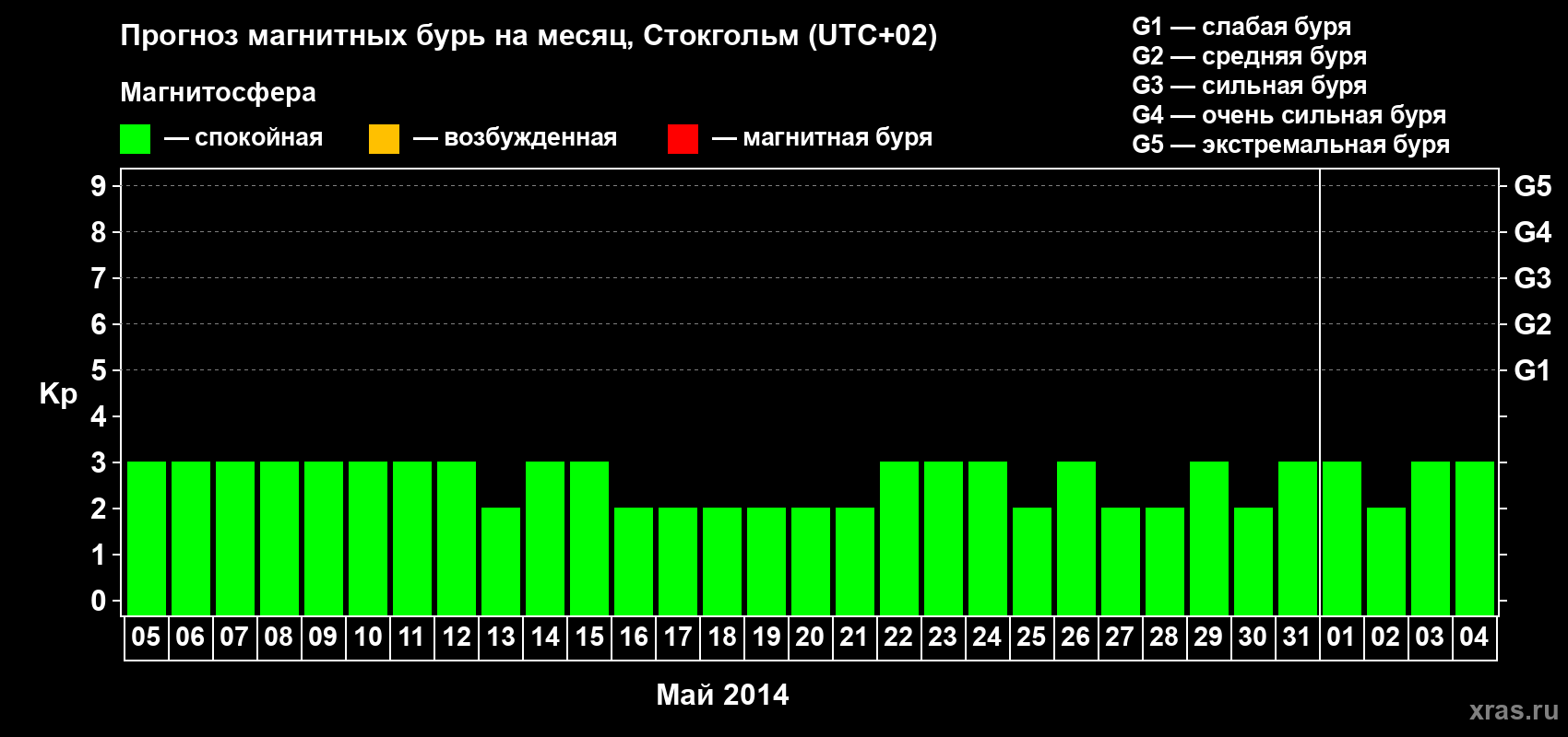 Прогноз магнитных бурь в Стокгольме — 5 мая 2014 года