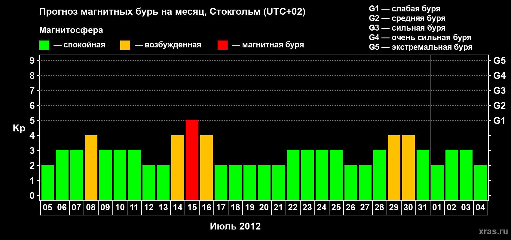 Прогноз магнитных бурь в Стокгольме — 5 июля 2012 года