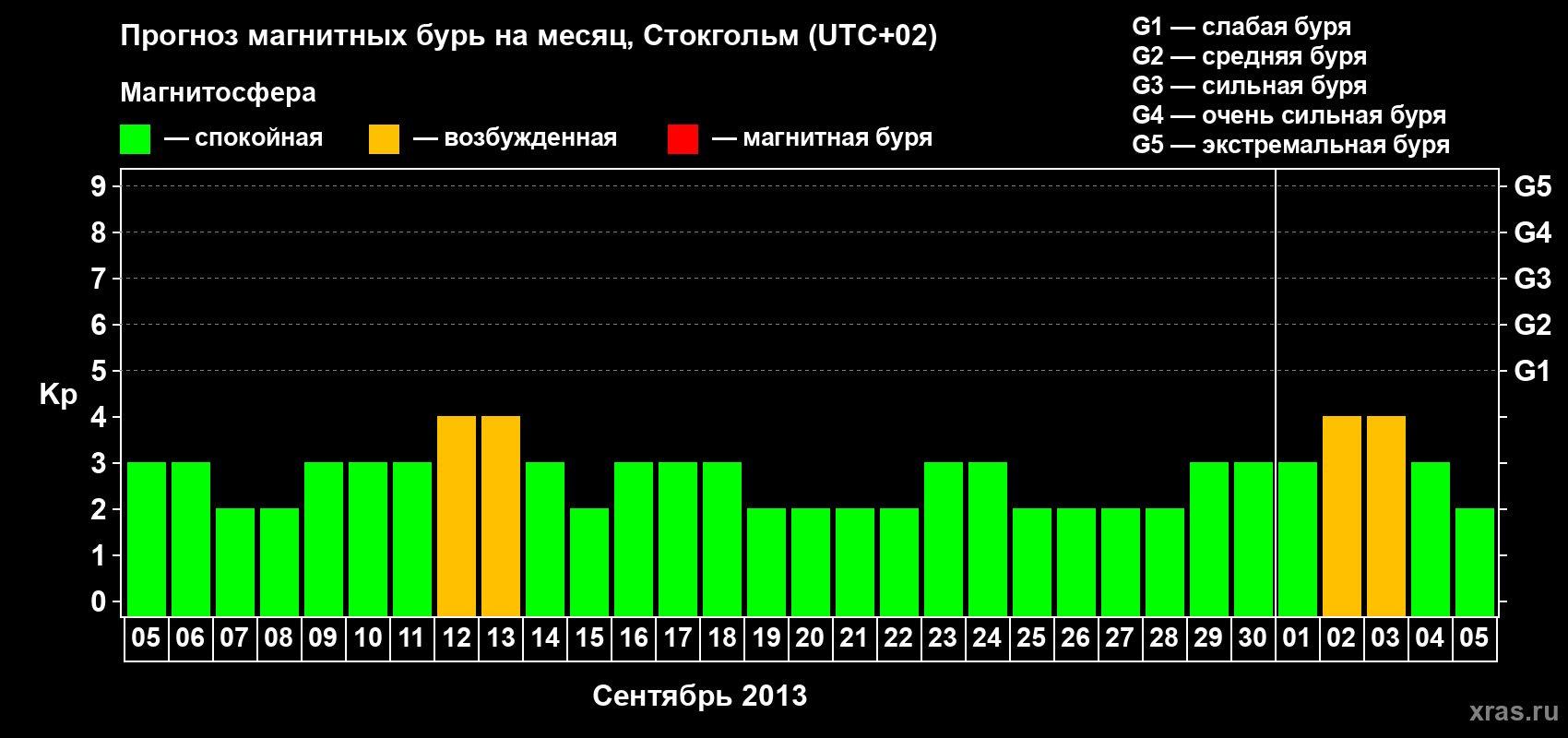 Прогноз магнитных бурь в Стокгольме — 5 сентября 2013 года