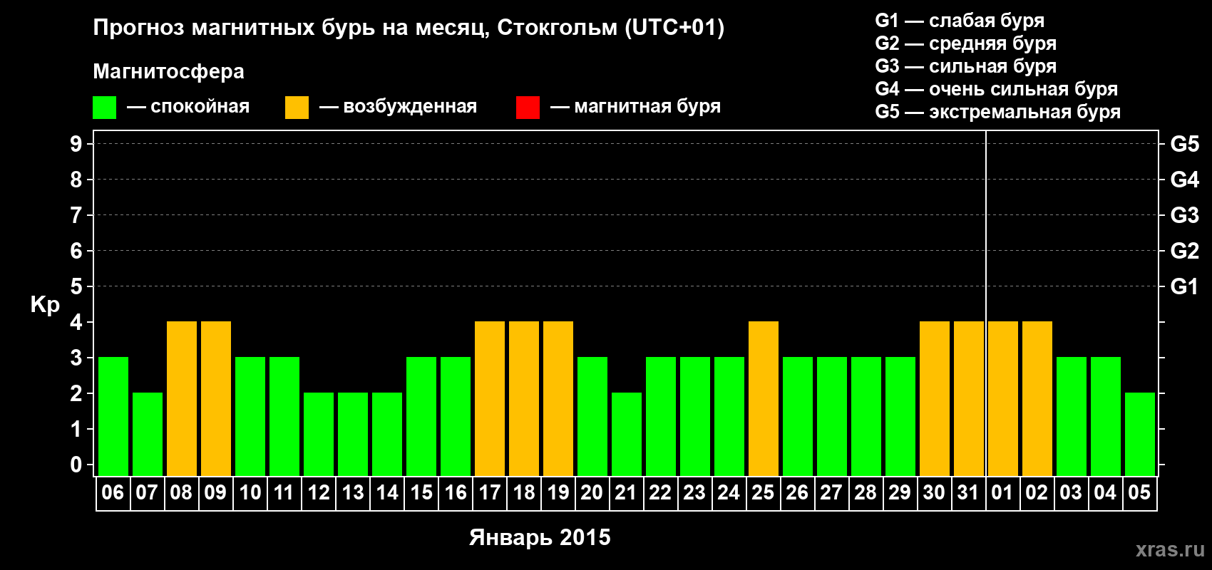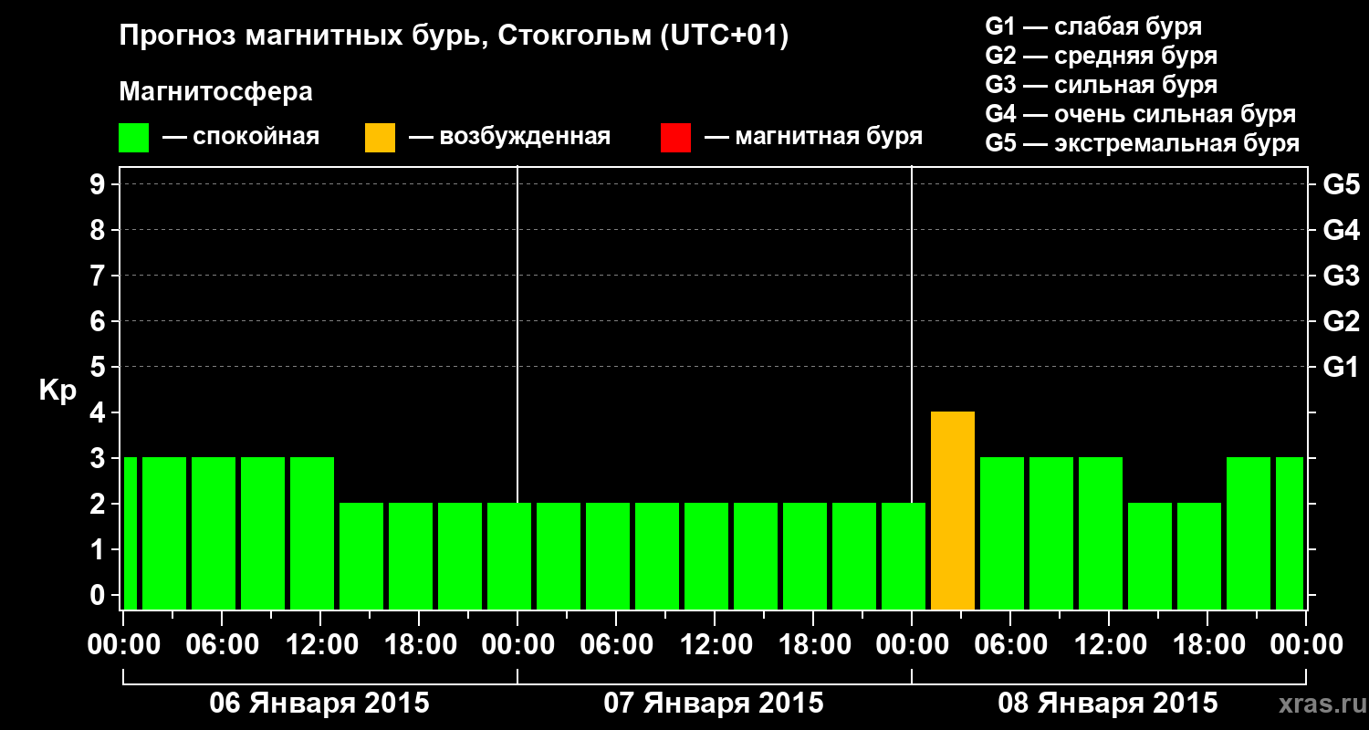 Прогноз магнитных бурь в Стокгольме — 6 января 2015 года