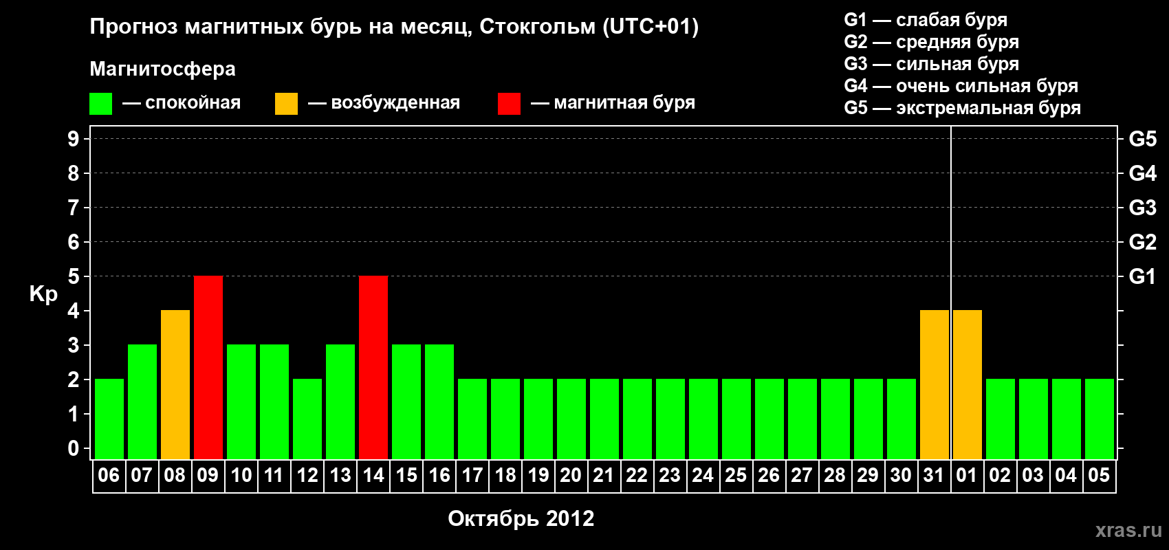 Прогноз магнитных бурь в Стокгольме — 6 октября 2012 года