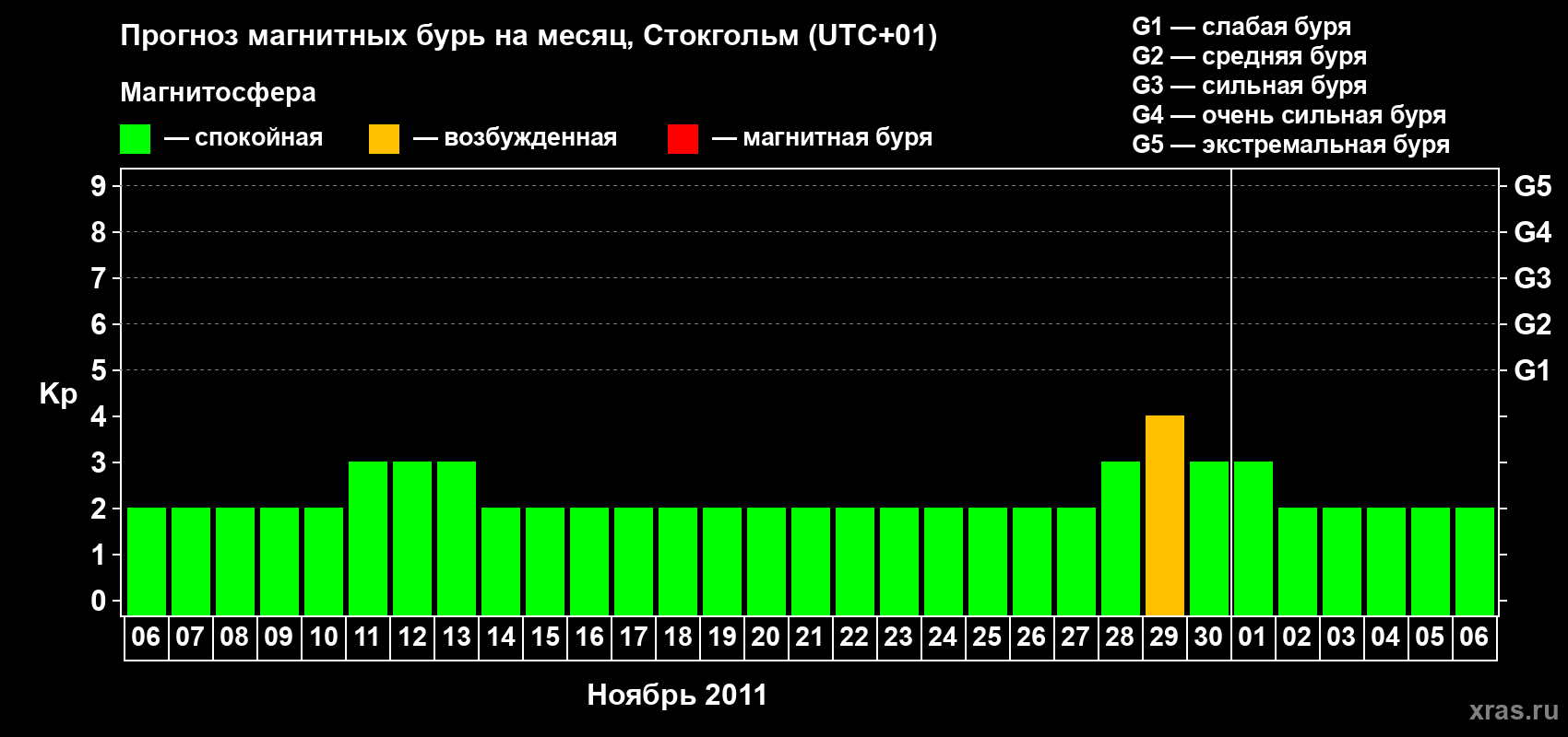 Прогноз магнитных бурь в Стокгольме — 6 ноября 2011 года