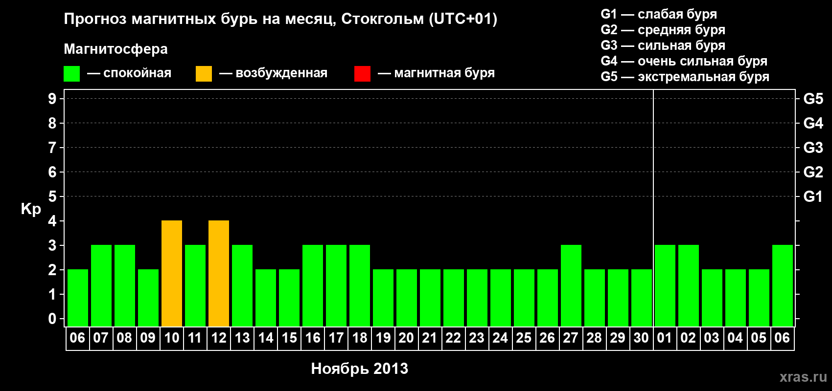 Прогноз магнитных бурь в Стокгольме — 6 ноября 2013 года