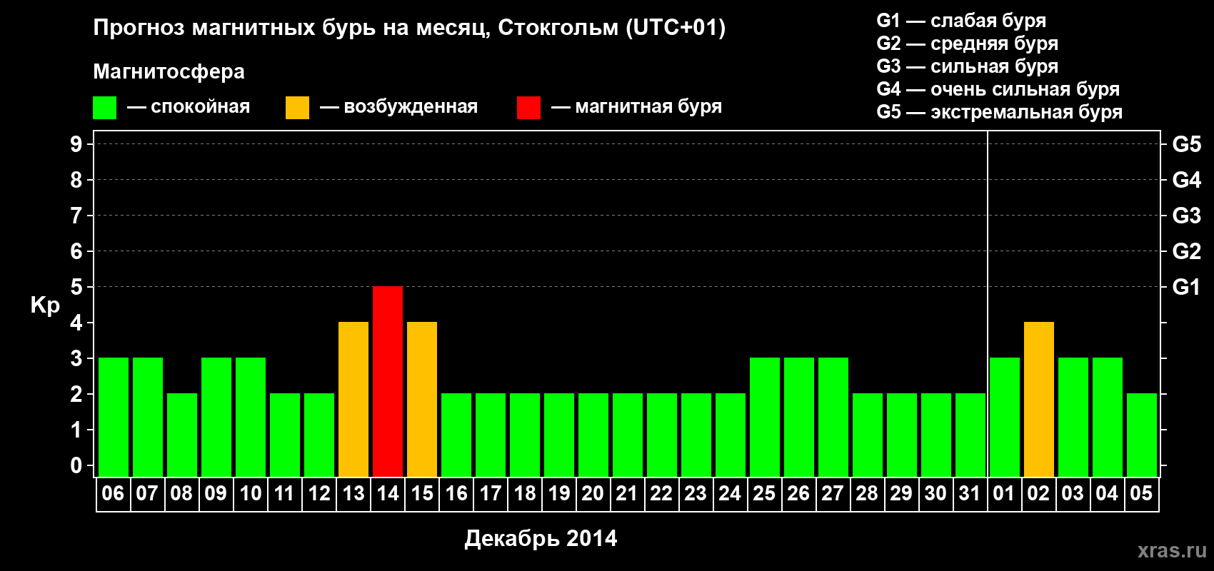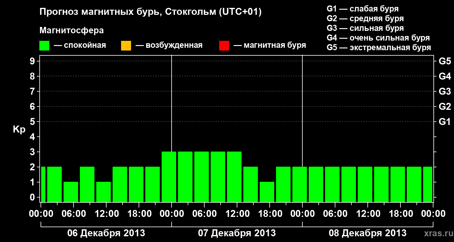 Прогноз магнитных бурь в Стокгольме — 6 декабря 2013 года