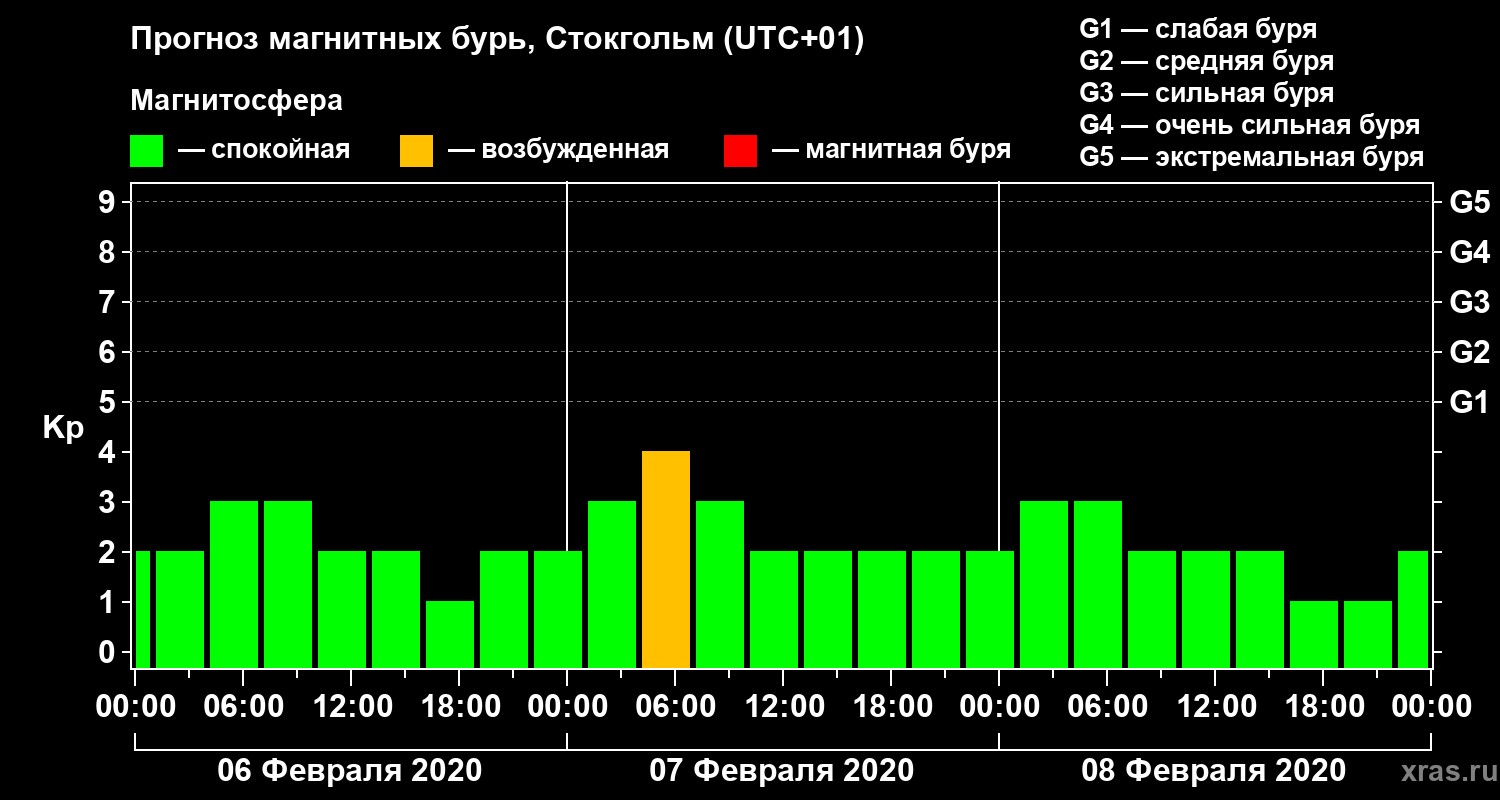 Прогноз магнитных бурь в Стокгольме — 6 февраля 2020 года