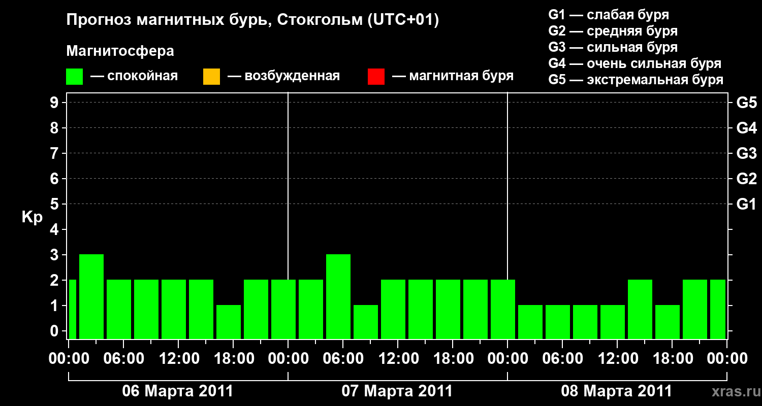 Прогноз магнитных бурь в Стокгольме — 6 марта 2011 года