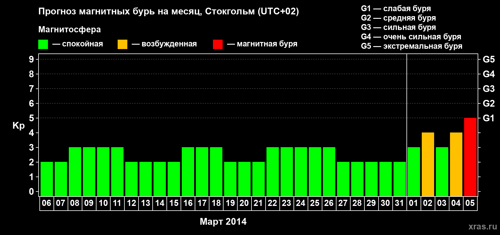 Прогноз магнитных бурь в Стокгольме — 6 марта 2014 года
