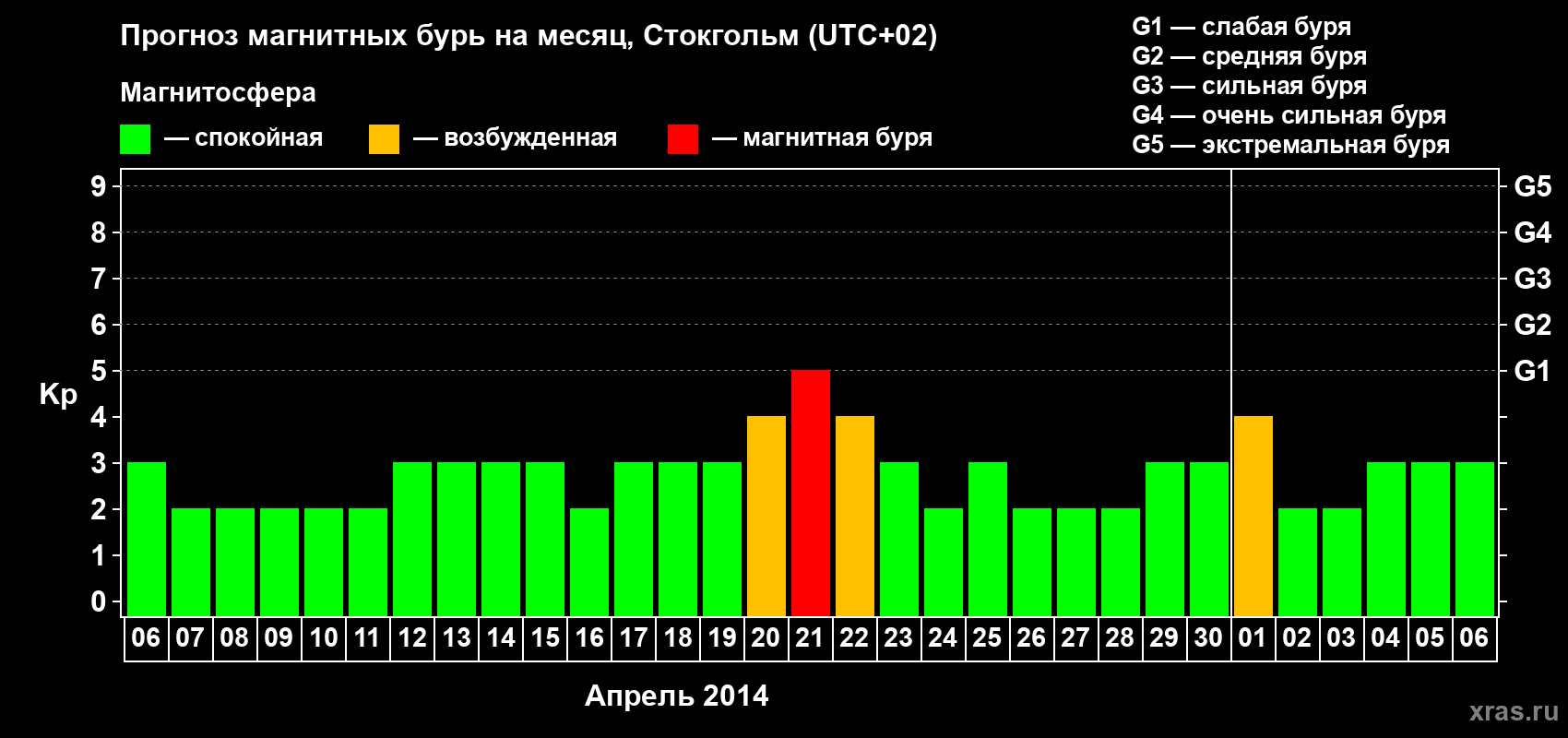 Прогноз магнитных бурь в Стокгольме — 6 апреля 2014 года