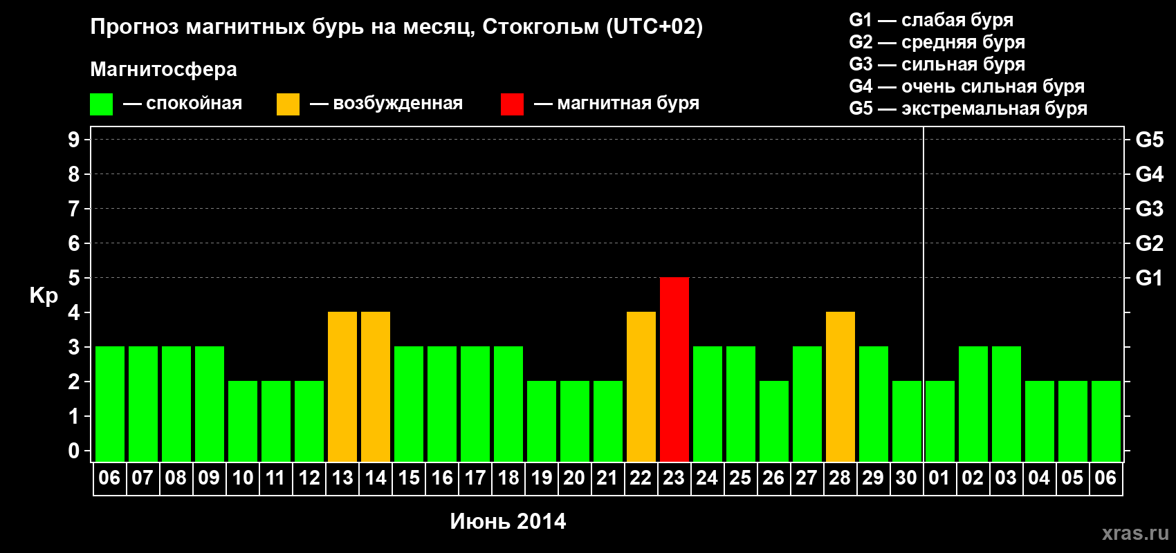 Прогноз магнитных бурь в Стокгольме — 6 июня 2014 года