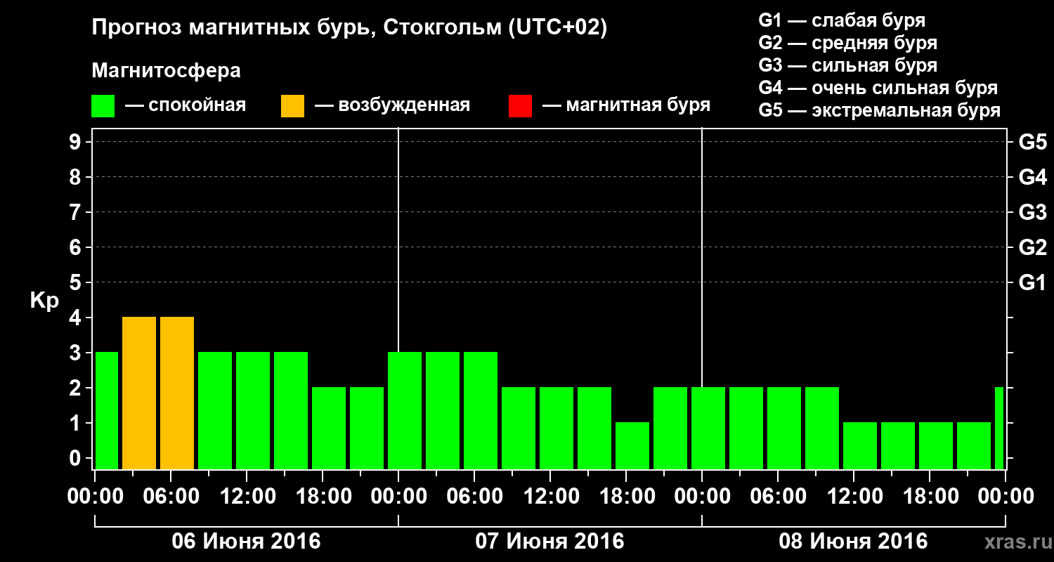 Прогноз магнитных бурь в Стокгольме — 6 июня 2016 года
