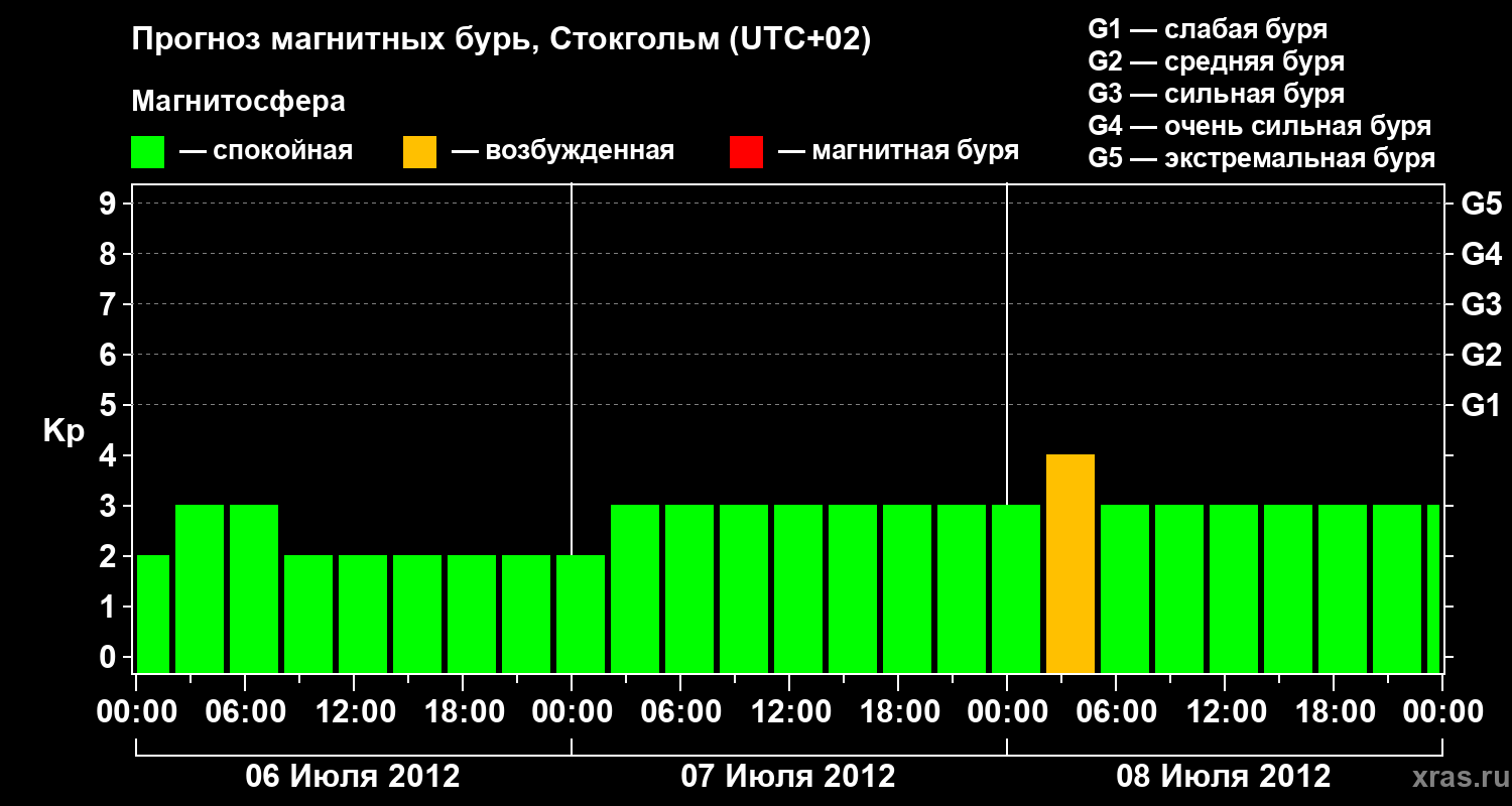 Прогноз магнитных бурь в Стокгольме — 6 июля 2012 года