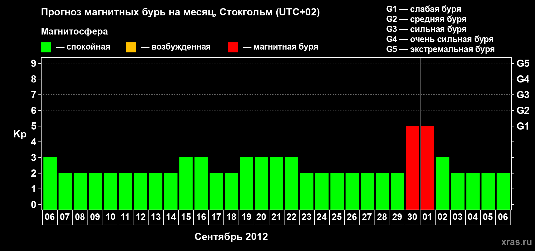 Прогноз магнитных бурь в Стокгольме — 6 сентября 2012 года