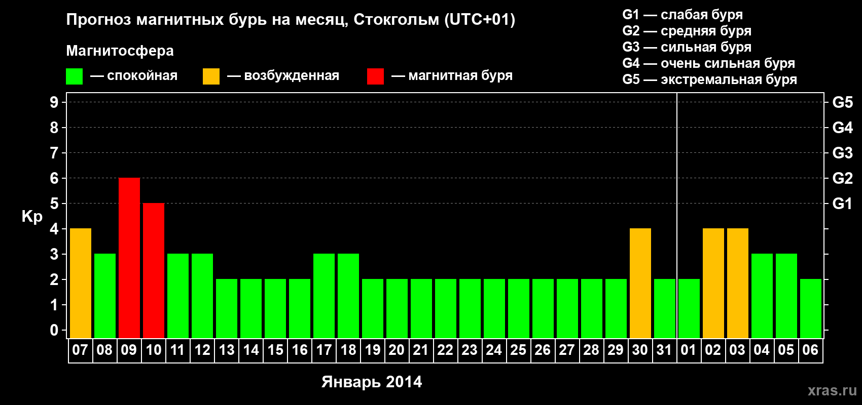 Прогноз магнитных бурь в Стокгольме — 7 января 2014 года
