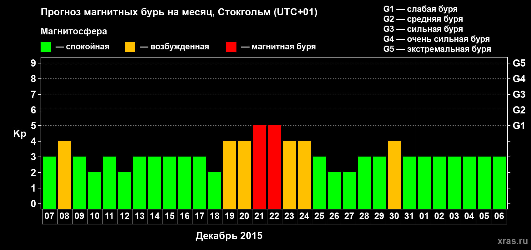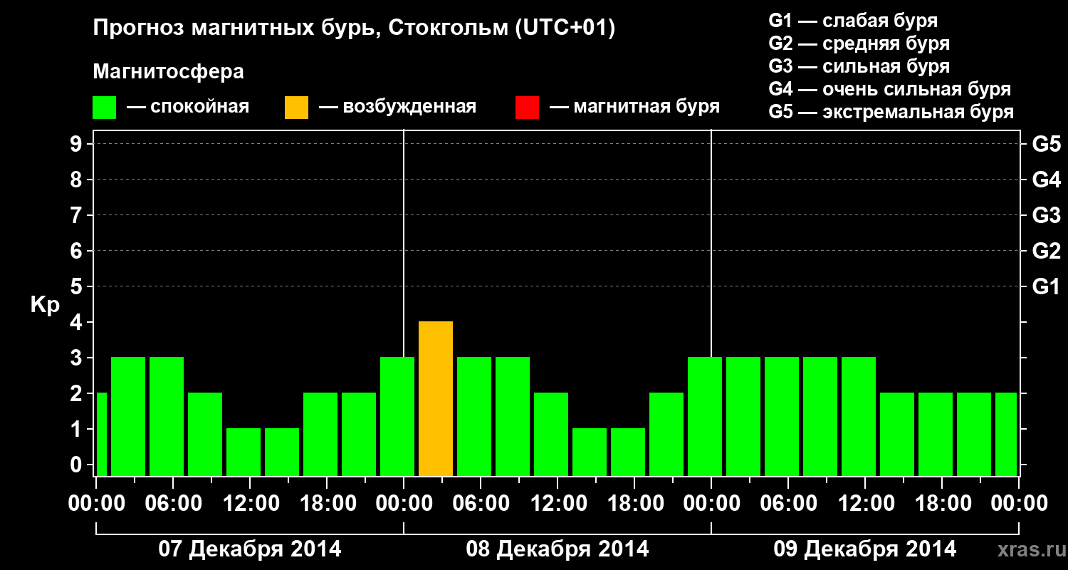 Прогноз магнитных бурь в Стокгольме — 7 декабря 2014 года