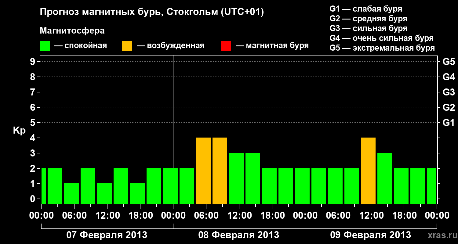 Прогноз магнитных бурь в Стокгольме — 7 февраля 2013 года