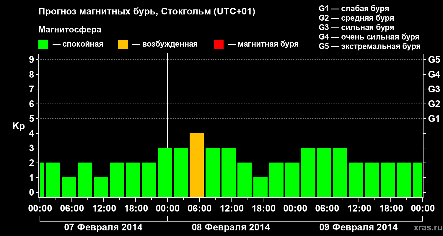 Прогноз магнитных бурь в Стокгольме — 7 февраля 2014 года