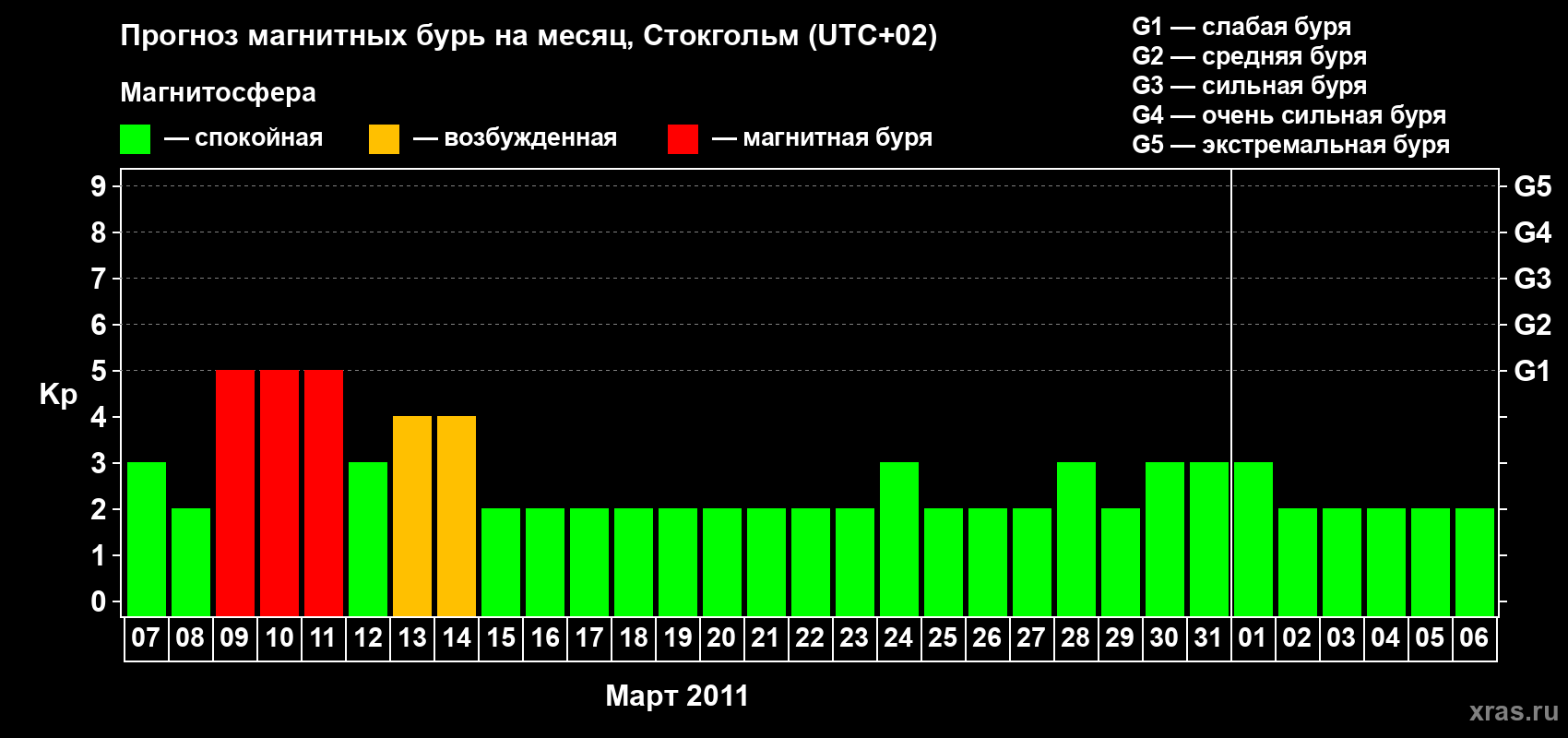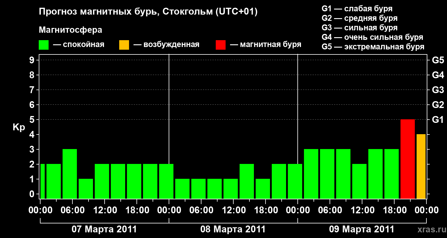 Прогноз магнитных бурь в Стокгольме — 7 марта 2011 года