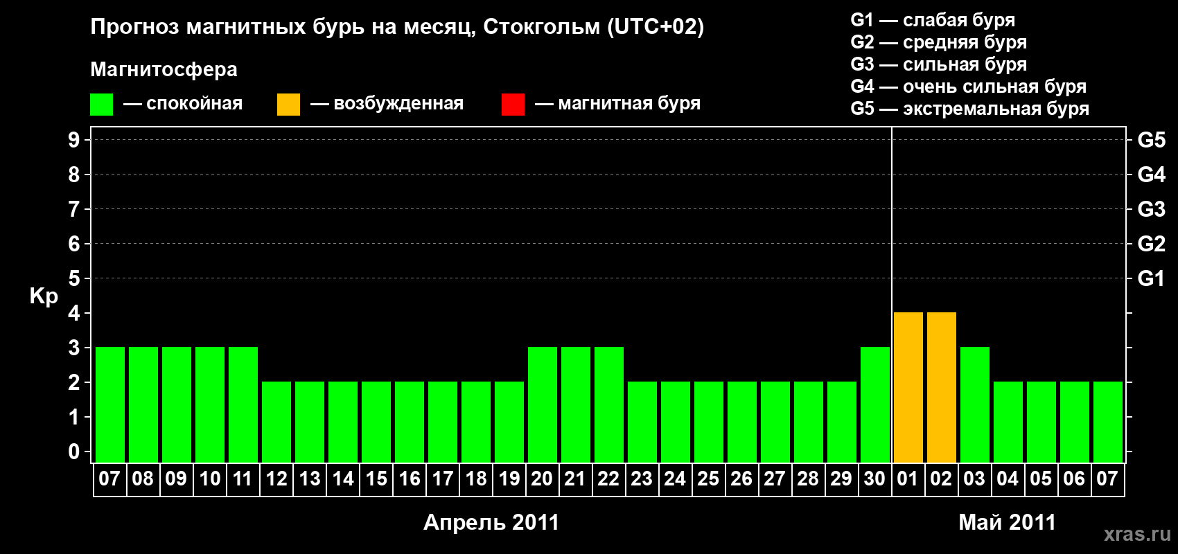 Прогноз магнитных бурь в Стокгольме — 7 апреля 2011 года