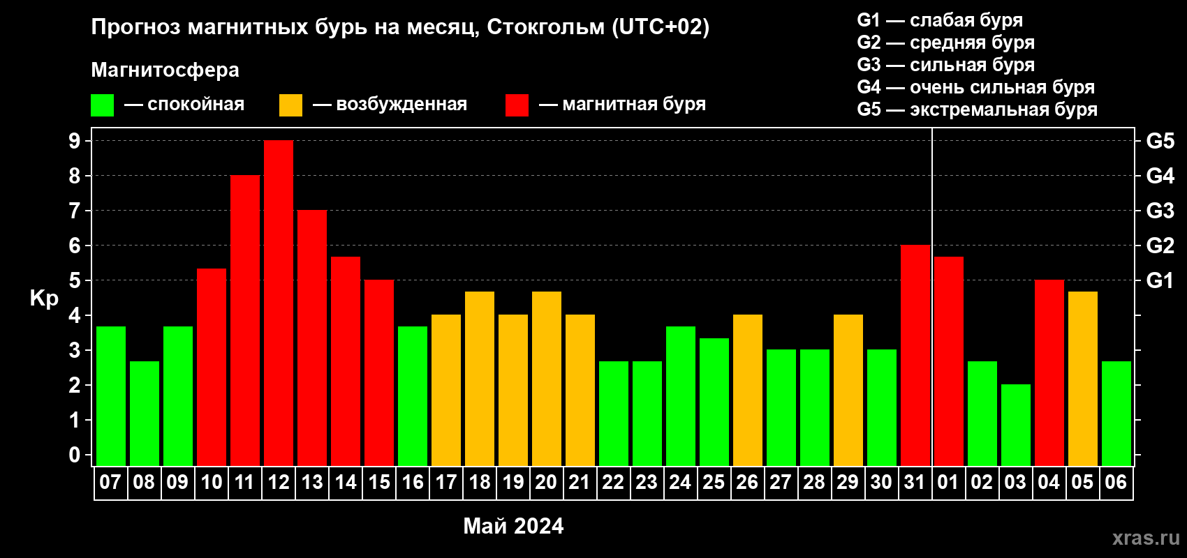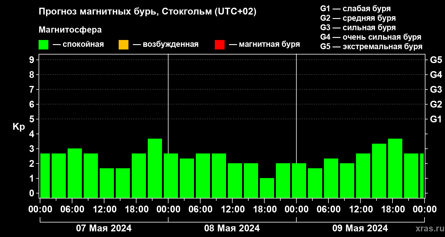 Прогноз магнитных бурь в Стокгольме — 7 мая 2024 года