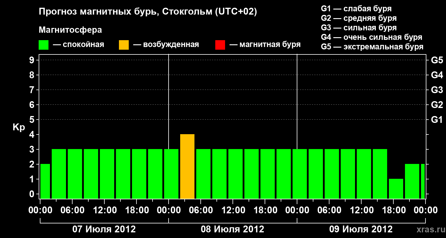 Прогноз магнитных бурь в Стокгольме — 7 июля 2012 года