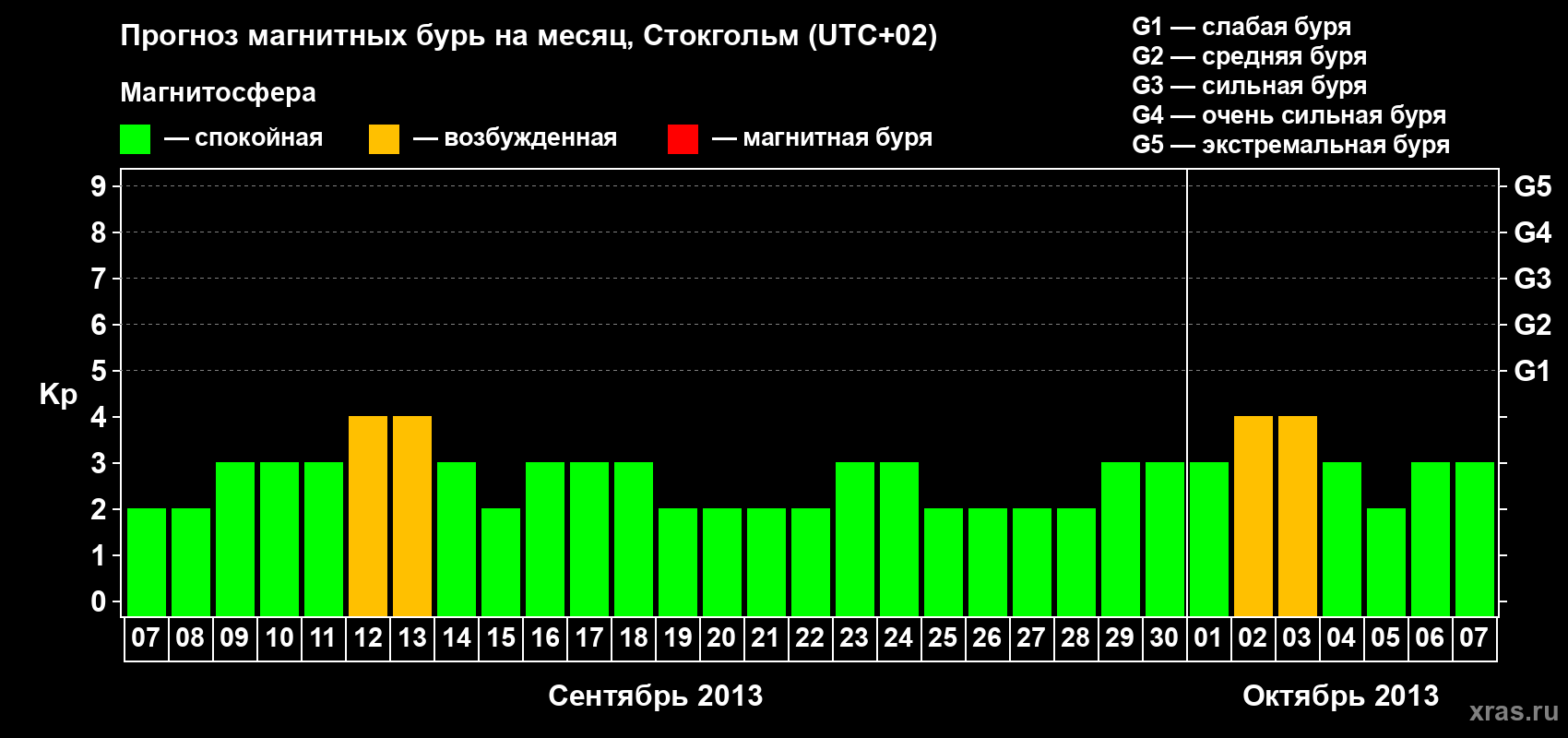 Прогноз магнитных бурь в Стокгольме — 7 сентября 2013 года