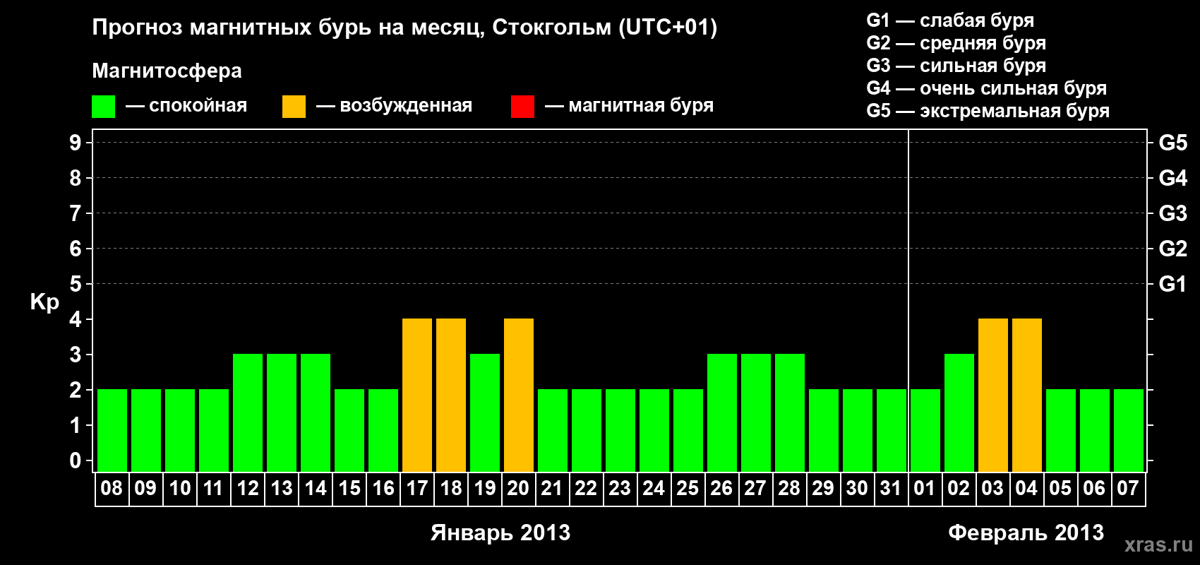 Прогноз магнитных бурь в Стокгольме — 8 января 2013 года