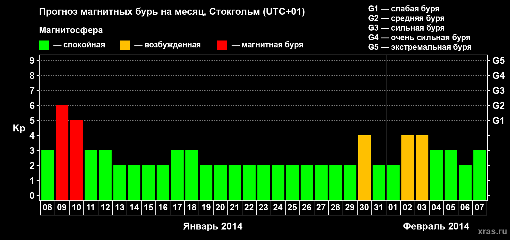 Прогноз магнитных бурь в Стокгольме — 8 января 2014 года