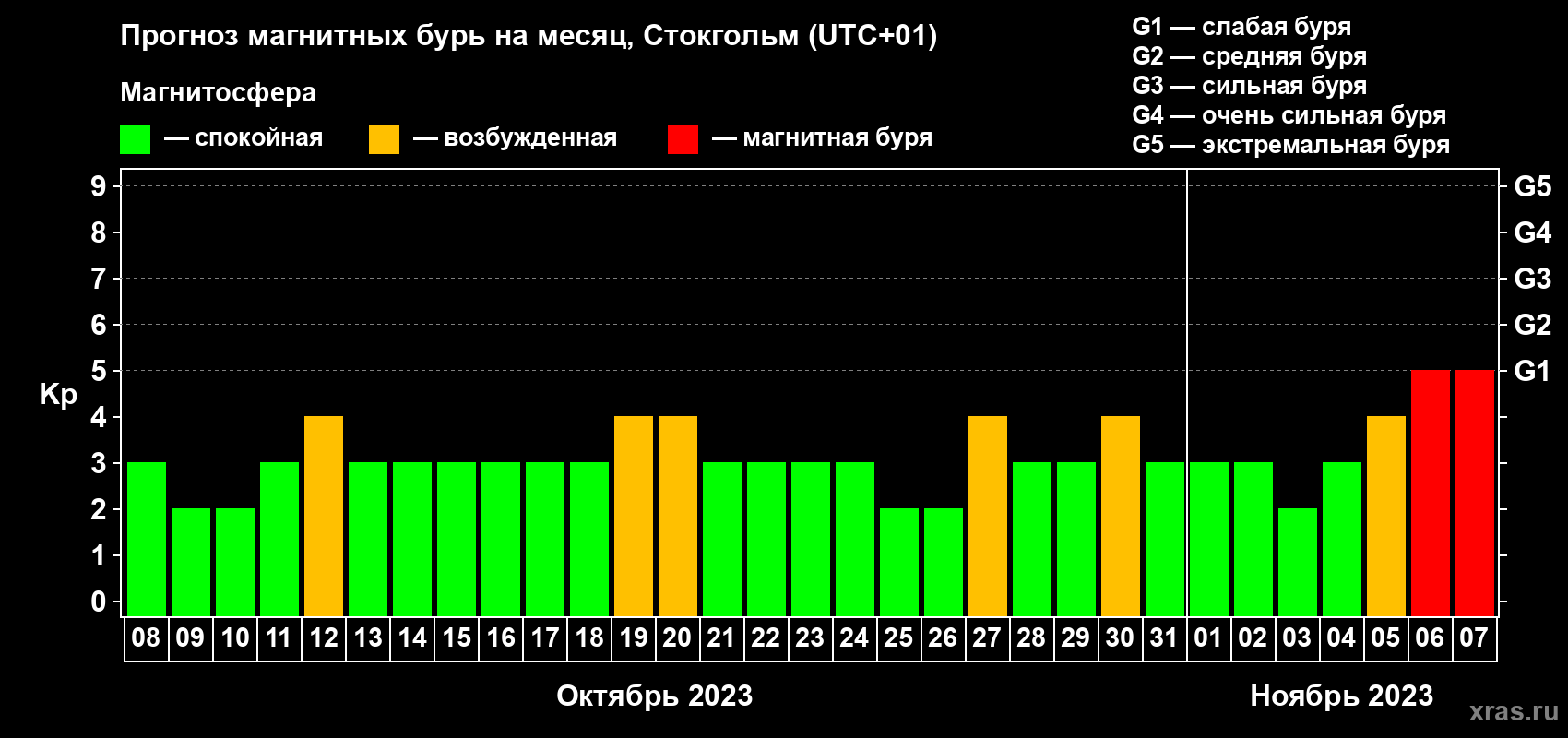 Прогноз магнитных бурь в Стокгольме — 8 октября 2023 года