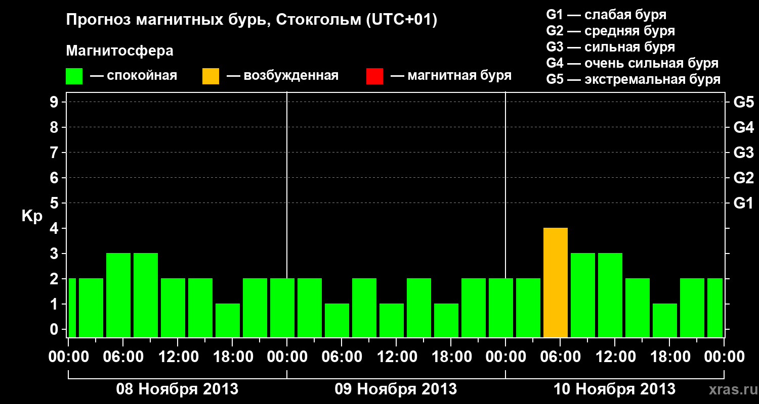 Прогноз магнитных бурь в Стокгольме — 8 ноября 2013 года