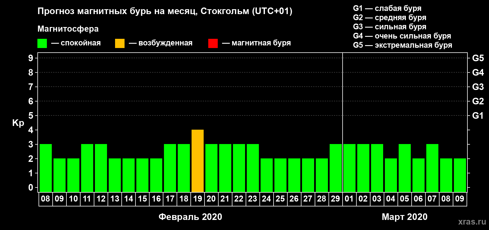 Прогноз магнитных бурь в Стокгольме — 8 февраля 2020 года
