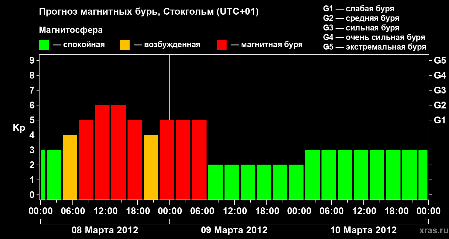 Прогноз магнитных бурь в Стокгольме — 8 марта 2012 года
